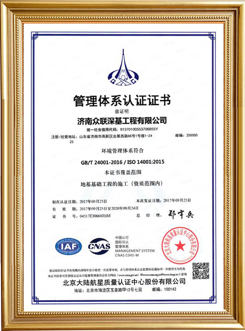 山東眾聯恒信工程集團有限公司成立于2010年4月20日,注冊資金2000萬元,固定資產8500萬元,公司主要從事地基基礎、勘察、設計等方面的專業承包,地基基礎專業施工資質壹級。
